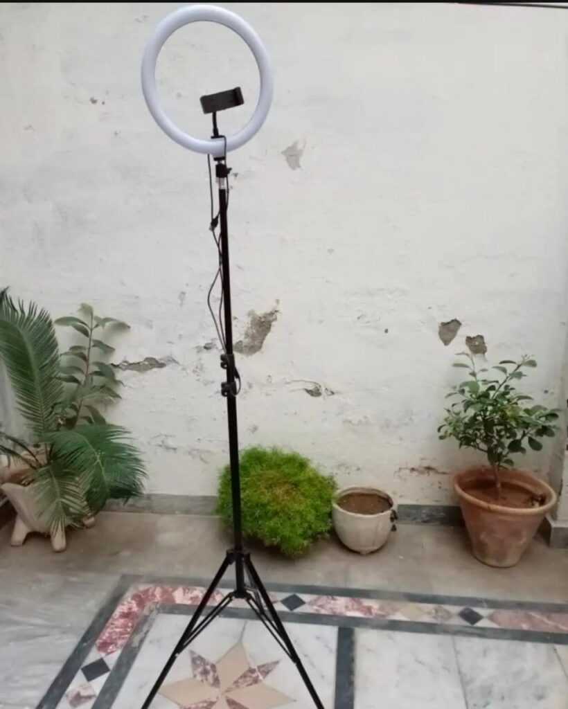 26cm Ring Light with Stand Enhance your photos, makeup sessions, and video content with the 26cm Ring Light with Stand – a complete lighting solution designed for content creators, makeup artists, and online professionals. This LED ring light kit comes with a 7-foot adjustable tripod, mobile holder, and 3 color light modes, making it perfect for TikTok videos, YouTube vlogs, Zoom meetings, makeup tutorials, and photography.